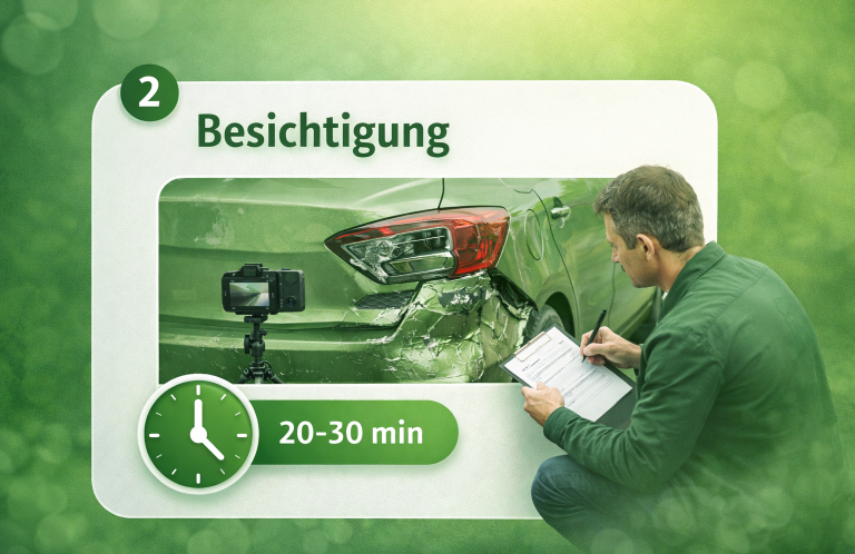 Wir dokumentieren sämtliche Unfallschäden sorgfältig und sichern alle relevanten Beweise. Der Termin dauert in der Regel etwa 20 bis 30 Minuten.