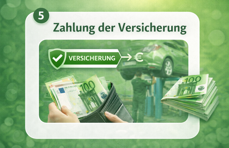 Die gegnerische Versicherung zahlt Ihnen den festgestellten Betrag unmittelbar auf Ihr Konto aus oder begleicht die Reparaturkosten direkt bei der Werkstatt.